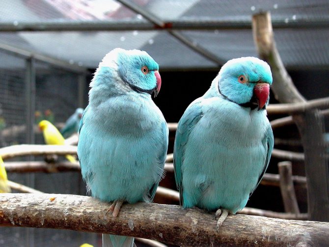 Интересно! Хотя ожереловый попугай от природы окрашен в маскировочный зеленый цвет, селекционеры вывели птиц с белым, синим, желтым и даже цветным перьевым покровом. Особый интерес для домашнего разведения представляет голубой ожереловый попугай с уникальной окраской.