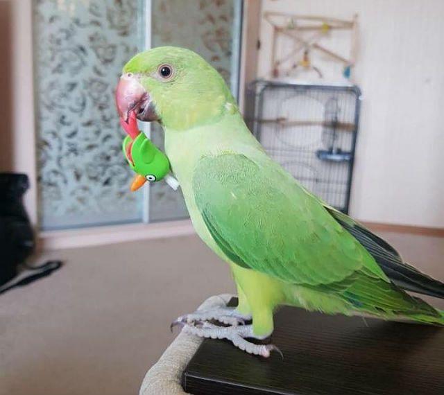 Уход за попугаем не представляет трудностей даже для начинающих птицеводов. Он сводится к поддержанию чистоты в клетке и правильному кормлению пернатого. Жилище кольчатого попугая регулярно подвергают уборке, которая включает мытье поилок, мисок для корма и игрушек.